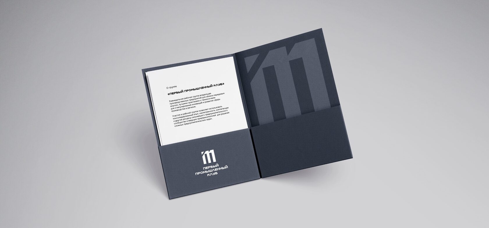 Наш логотип — это калейдоскоп образов: он объединяет промышленные трубы, отражающие деятельность участников, элемент буквы «М», нампоминающий о "Первом Промышленном Клубе", треугольник, устремлённый вверх, символизирующий стабильность, и единицу, которая символизирует лидерство и первенство.